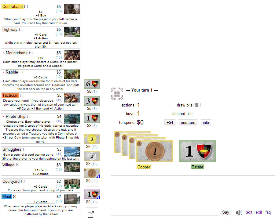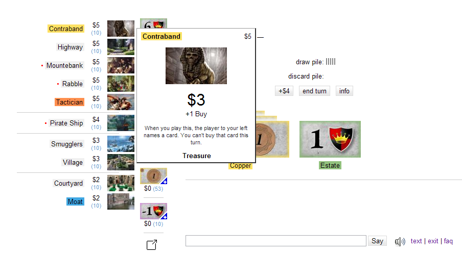 Dominion Full Card Display shows the card text inline, and includes persistent toggles for showing/hiding the card text.